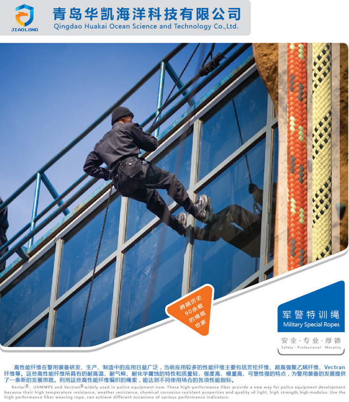 該繩纜采用先進編織和后整理技術(shù)制造,質(zhì)地柔軟、便于操作、強度高、耐磨損、耐老化,適用于各種訓練、實戰(zhàn)等復雜環(huán)境,具有速降、救援、牽拉等多種用途。