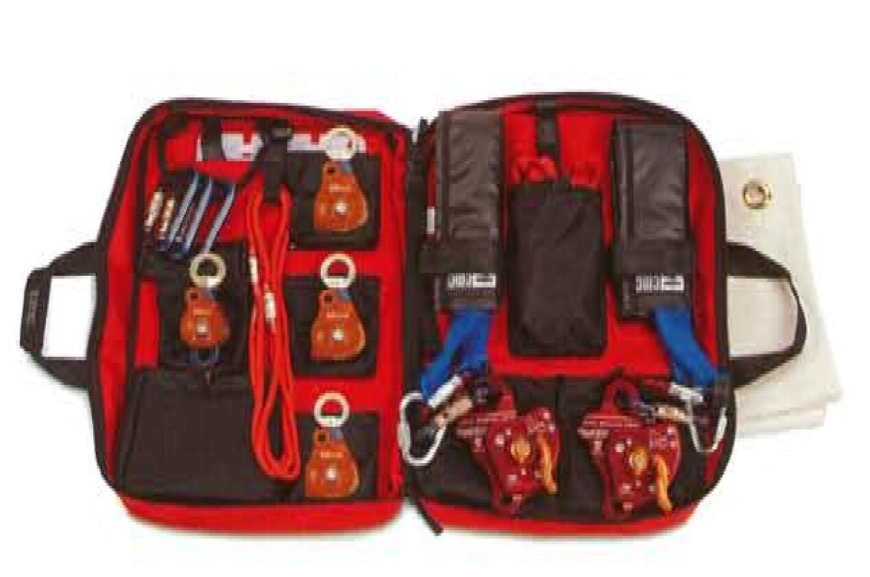 器材包不僅僅用于儲(chǔ)存器材,方便攜帶,更重要的是用于器材的組裝,保證器材時(shí)刻處于可裝配的待命狀態(tài)。舉個(gè)例子,錨裝備可以放一個(gè)包里,主繩和附屬硬件放一個(gè)包里,保護(hù)系統(tǒng)的繩索和器材放第三個(gè)包里。換句話說(shuō)組裝一個(gè)包內(nèi)的裝備,就可以組裝成主繩或保護(hù)繩系統(tǒng)。其目的就是救援所需的裝備都能第一時(shí)間到達(dá)現(xiàn)場(chǎng),然后所有器材都能進(jìn)行快速組裝。
